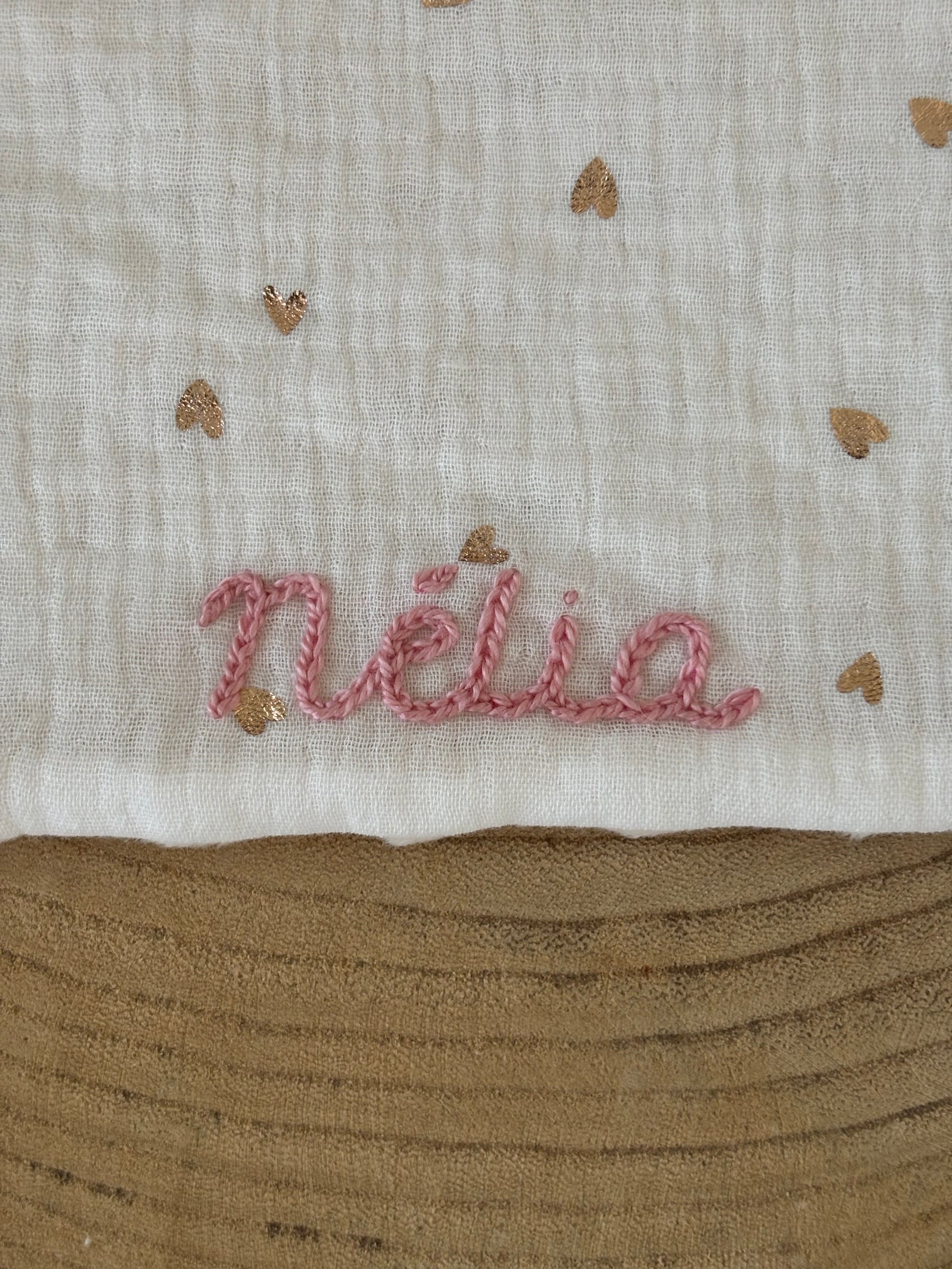 Vous pouvez également rajouter une attache tétine (morceau de tissus supplémentaires aux motifs choisis cousus sur le lange pour pouvoir faire un noeud) pour que bébé ai toujours ses deux meilleurs amis ensemble 🥰